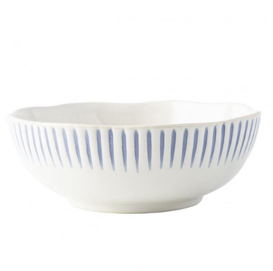 From our Wanderlust Collection - Equally stunning and simplistic, radiant stripes in breezy shades of blue adorn this dinnerware collection. With a wide mouth and shallow depth, this coupe shape bowl is perfect for grains, pasta or entrée salads.