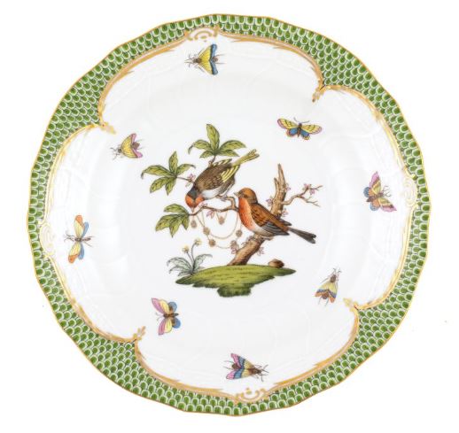 Herend Rothschild Bird Green Dessert Plate, Motif 10