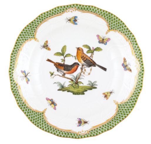 Herend Rothschild Bird Green Dessert Plate, Motif 9