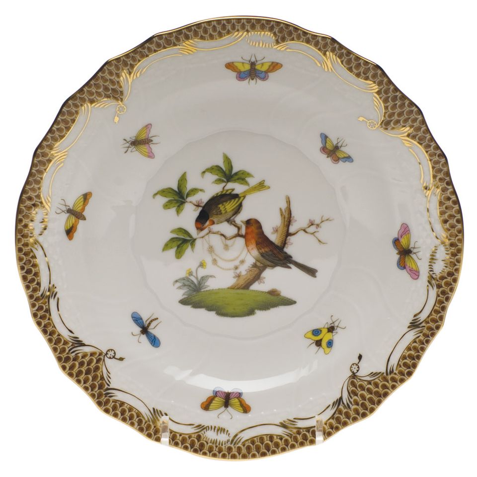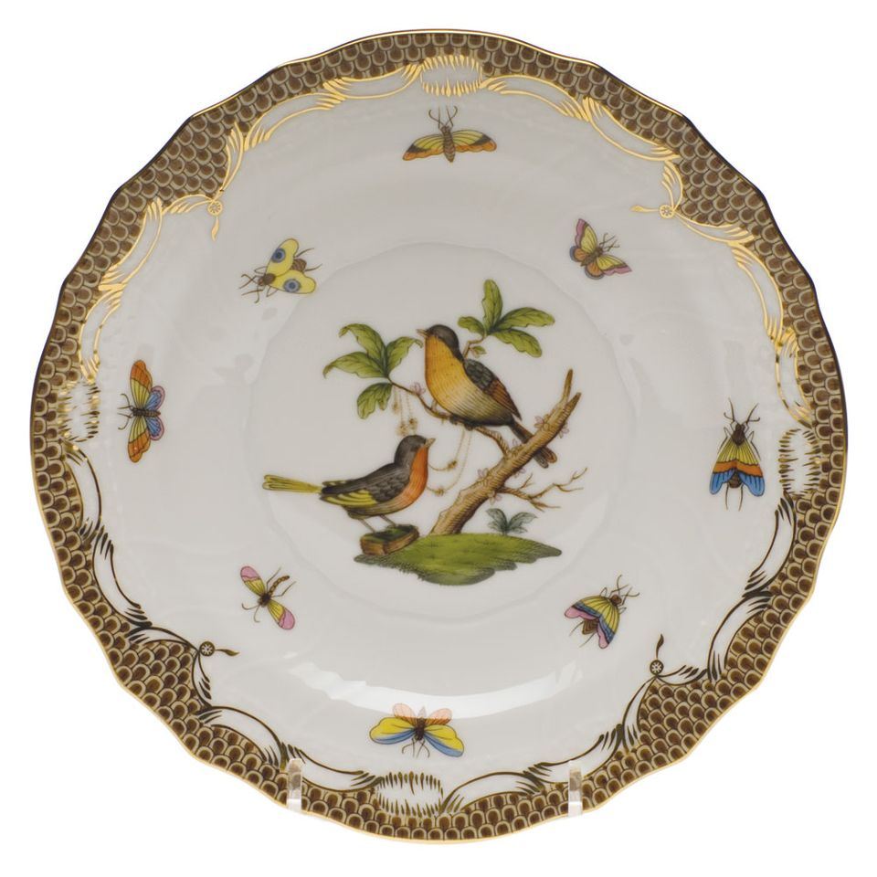 Herend Rothschild Bird Brown Border Salad Plate