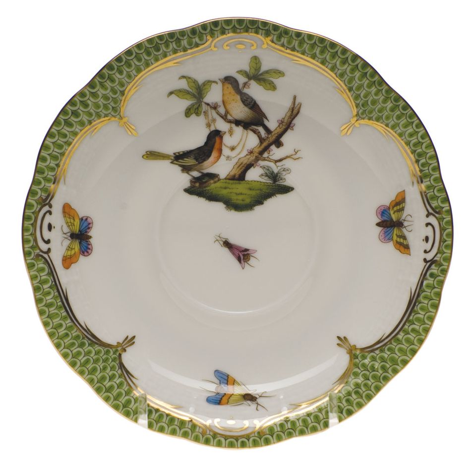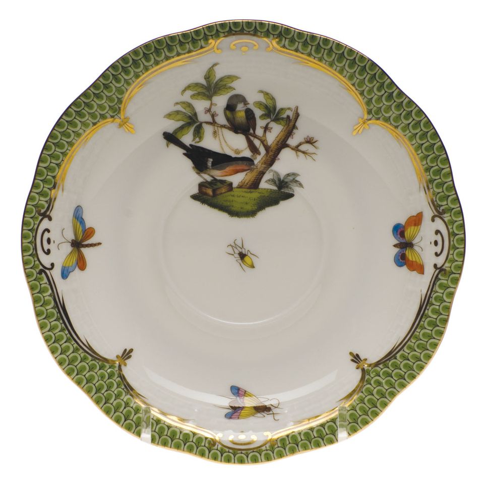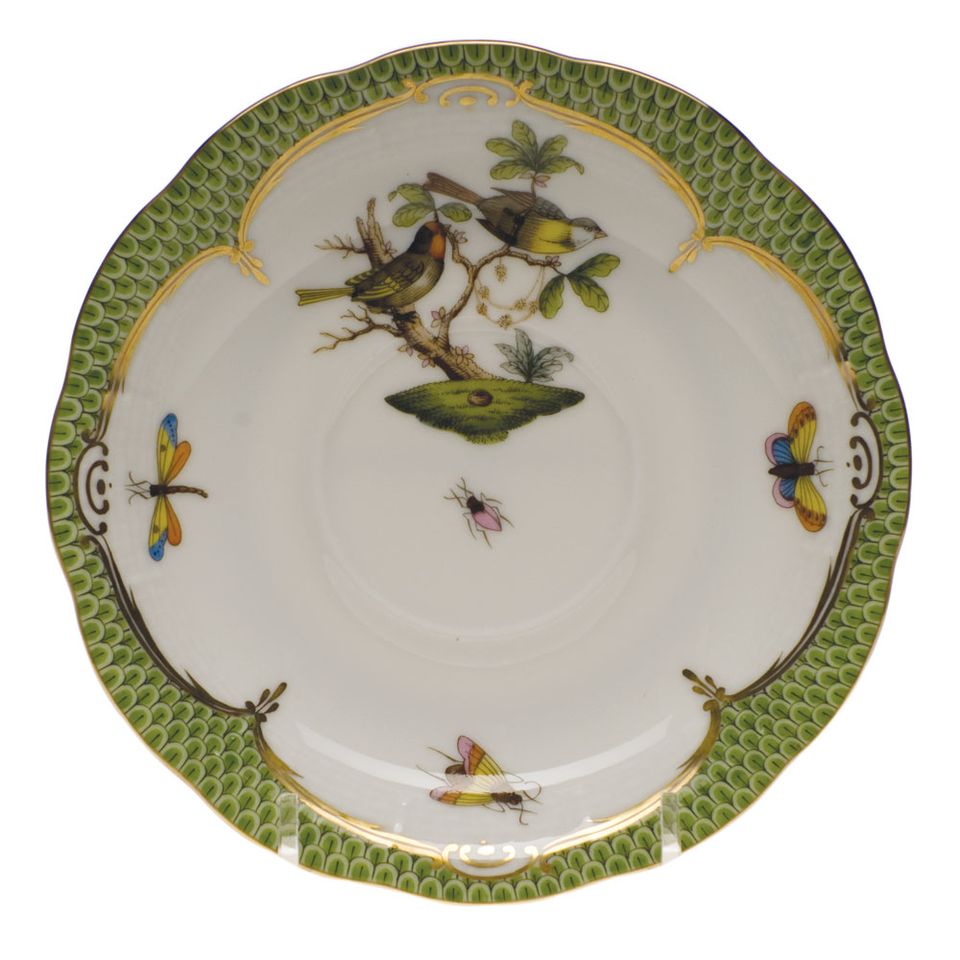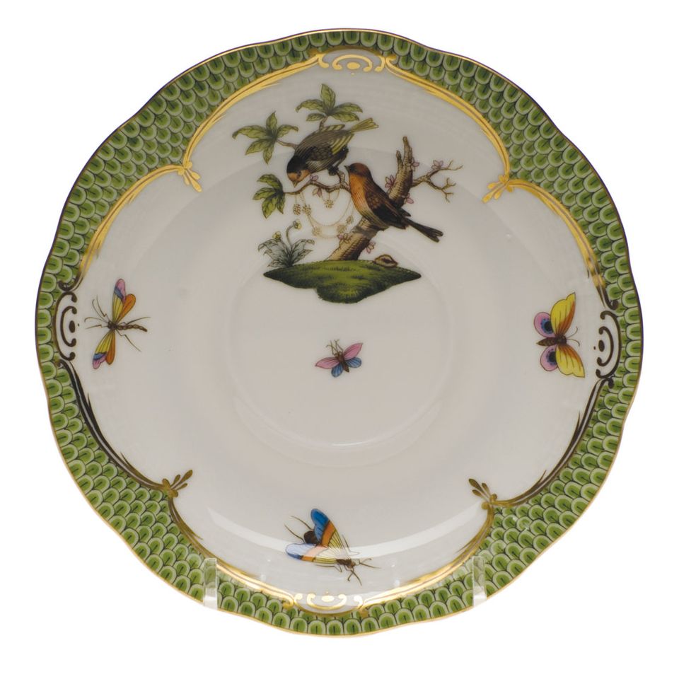 Herend Rothschild Bird Green Border Tea Saucer