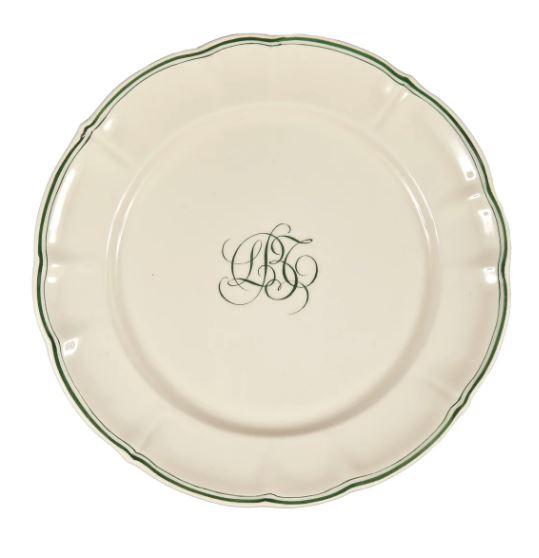 Laboratorio Paravicini Bespoke Milano Plate with Central Monogram, Cream Glaze and Green